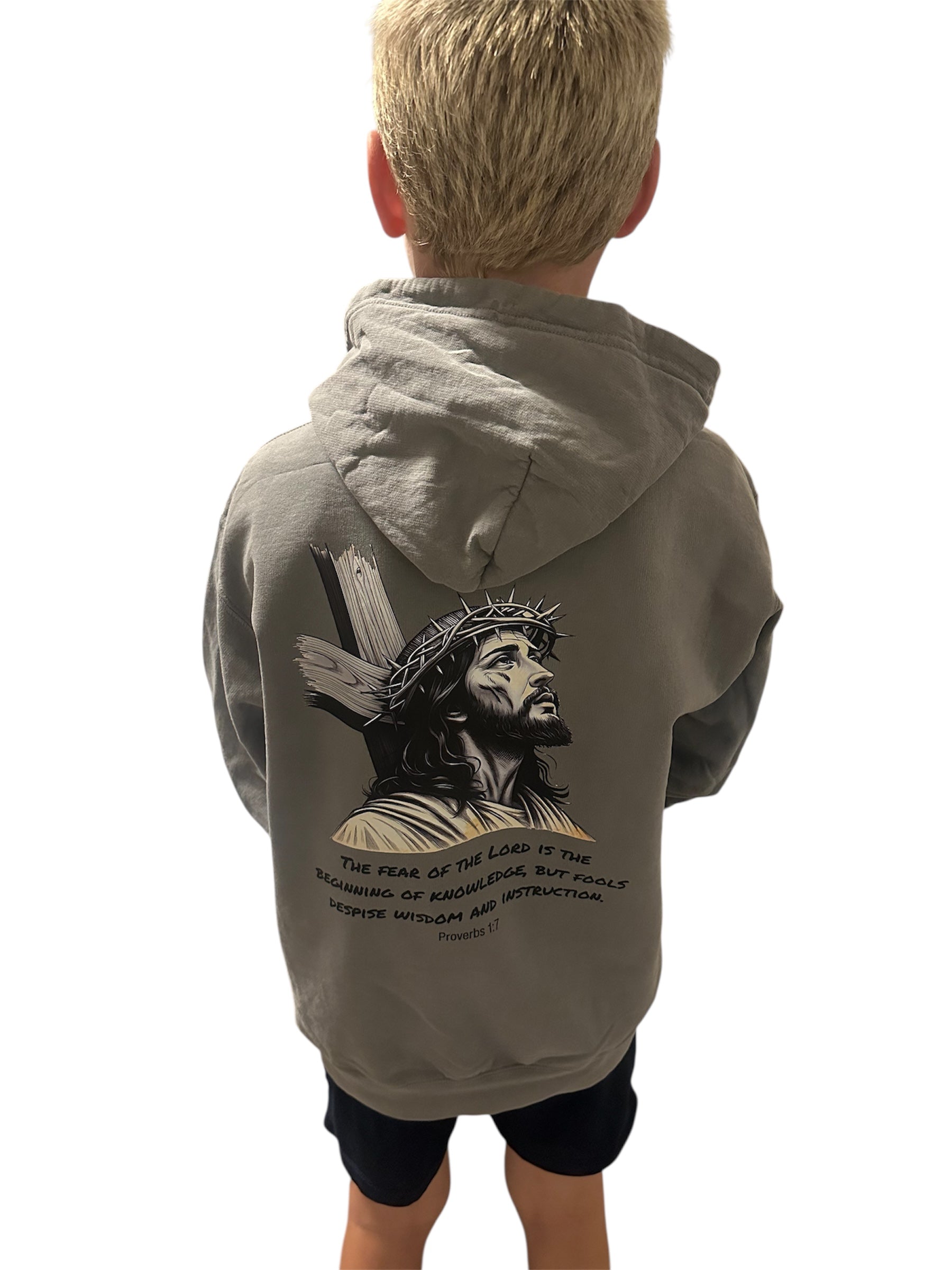 Christ head with Proverbs 1:7 Bible Verse- Charcoal Gray